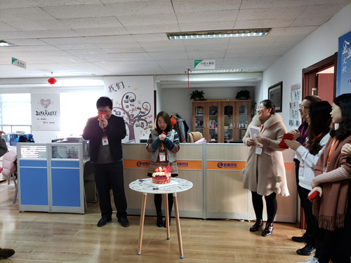 在這個(gè)月,可謂是多喜臨門,一是迎來(lái)了我們兩位可愛的同事的生日,行政部早早的定好了生日蛋糕,唱生日祝福歌,許下今年的愿望,切蛋糕吃蛋糕,讓開工氣氛更加熱鬧了?